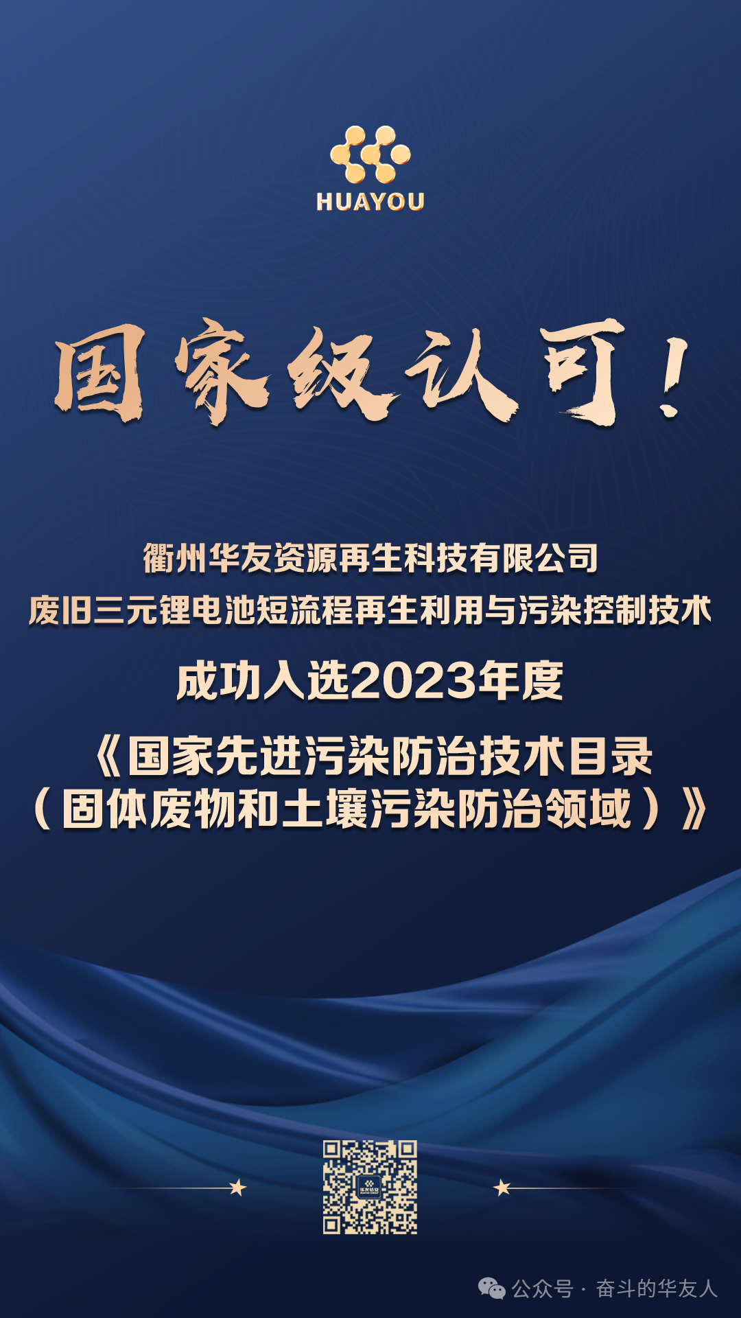 ¿ËÈÕ£¬áéÖݶíÂÞ˹רÏí»á×ÊÔ´ÔÙÉú¿Æ¼¼ÓÐÏÞ¹«Ë¾×ÔÁ¦Ñз¢ÊÖÒÕ¡ª¡ª·Ï¾ÉÈýÔªï®µç³Ø¶ÌÁ÷³ÌÔÙÉúʹÓÃÓëÎÛȾ¿ØÖÆÊÖÒÕ£¬ÀÖ³ÉÈëÑ¡¡°ÈýÄêÒ»ÆÀÑ¡¡±µÄ2023Äê¶È¡¶¹ú¼ÒÏȽøÎÛȾ·ÀÖÎÊÖÒÕĿ¼£¨¹ÌÌå·ÏÎïºÍÍÁÈÀÎÛȾ·ÀÖÎÁìÓò£©¡·£¨ÒÔϼò³Æ¡¶Ä¿Â¼¡·£©£¬ÈýԪ﮵ç½ÓÄÉÁìÓòÌìϽöÁ½¼ÒÈëÑ¡¹ú¼Ò¼¶¹ÌÌå·ÏÎïÎÛȾ·ÀÖÎÁìÓòÊ÷Ä£ÊÖÒÕ¡£
